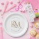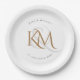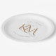 Assiettes En Carton Monogramme moderne Gold Script Mariage blanc éléga
