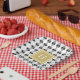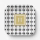 Assiettes En Carton Monogramme or noir blanc arlequin motif