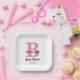 Assiettes En Carton Monogrammes Baby shower rose blanc mignon simple
