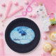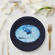Image bleue et blanche d'un orignal de vache en milieu urbain en hiver. Le texte personnalisable "Alaska" apparaît également. Les orignaux sont des résidents de nombreuses collectivités de l'Alaska qui vivent toute l'année. Ici à Anchorage il y a environ 1500 animaux, ainsi que des loups, des ours bruns et d'autres animaux sauvages.Ils sont généralement bien élevés. Ils traversent souvent les rues aux passages piétons après avoir attendu un signal de marche.