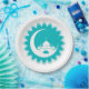 Silhouette en blanc d'une mosquée dans un croissant de lune avec une bordure décorative. L'arrière - plan est d'un bleu turquoise mais peut être customisé à n'importe quelle couleur. Parfait pour le mois du Ramadan.