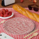 Assiettes En Carton Motif Crème Et Ligne Abstraite Rouge