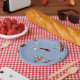 Caractérisé par un design graphique de carpe koi contre un arrière - plan bleu, basé sur l'art traditionnel japonais. Les poissons sont des animaux ornementaux souvent gardés dans des étangs dans les jardins orientaux, et ils peuvent symboliser l'amour romantique, l'affection et l'amitié, parce que le mot "koi" en japonais est prononcé de la même façon qu'un autre mot qui signifie "amour".
