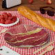 Assiettes en papier motif marbre rouge avec or