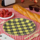 Assiettes En Carton Motif plaid tendance noir Jaune