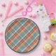 Belle motif contemporaine jaune, saumon rouge-orange, bleu foncé, vert turquoise et blanc écossais.