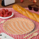 Assiettes En Carton Motif Zigzag Orange et Blanc Chevron