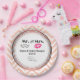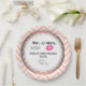 Plaques de papier mariage personnalisées au design mariage moderne - lèvres rose glamour et illustration de moustache d'aspect masculin et rétro. Placez-vous sur un arrière - plan chevron de pêche. Texte dit M. et Mme et vous pouvez personnaliser avec vos noms et date mariage à l'intérieur d'un cercle rose de gradient d'or.