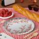 Jolies plaques de papier avec un élégant dessin de toils de branches rouges.