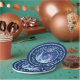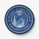 Illustration de noël, cerfs, oiseaux et ornements de noël bleu et blanc cool de minuit. Texte personnalisable en cercle - Joyeux Noël et nom de famille.