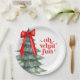 Plaques de fête de Noël avec arbre de Noël et arc rouge. Oh quel plaisir !