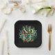 Le mot NOEL et votre nom parmi les feuilles d'hiver et les baies sur un arrière - plan noir (ou toute couleur), ces assiettes carrés en papier sont élégantes pour toutes les occasions de Noël de vacances. CORRESPONDRE des articles dans notre magasin.