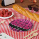 Des idées cadeaux de tour design, chic et moderne. Tour eiffel noir, coeurs et rubans parties scintillant rose chaud néon (FAUX NOT REAL PARTIES SCINTILLANT) avec jolie bande de diamants noirs (pas de vrais diamants) de beaux points et coeurs personnalisés avec vos cadeaux de nom ou de monogramme ou vos initiales ou vous pouvez ajouter votre propre texte personnel. Idées cadeaux Girly Paris pour femmes et filles.
