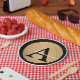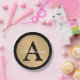 Personnalisez ce bouton d'apparence métallique doré surligné dans des plaques de papier rond noir avec n'importe quel nom et monogramme personnalisé unique.