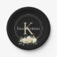 Assiettes En Carton Nom personnalisé noir Monogramme Roses blanches