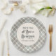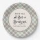 Design charmant avec charme rustique de ferme, ce style de vacances de Noël de style victorien dispose d'un motif moderne taupe neutre (gris-beige), avec un accent bleu poussiéreux. Superbe visage de type vintage épelle "North Pole Bed and Breakfast - Cookies frais servis tous les jours". Un renne est en silhouette sur le dessin. Ces plaques de papier sont disponibles en 2 tailles : 9 pouces de diamètre (voir ici) ou un plus petit diamètre 7 pouces.
