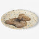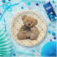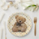 nounours Brown sur arrière - plan jaune doux avec motif pois. Peut être utilisé pour le baby shower.