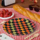 Assiettes En Carton Orange Black À damiers En vichy Motif