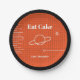 Cute Eat Cake plaques de papier d'anniversaire pour votre soirée à thème d'espace. L'arrière - plan représente et orange écran d'ordinateur où tous les éléments apparaissent. Personnalisez-le avec votre propre message. Illustré et dessiné par Patricia Alvarez.