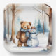 Assiettes En Carton Ours En Conduite D'Hiver Et Snowman