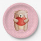 Assiettes En Carton Ours en peluche mignon portant un coeur rouge