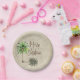 Élevez vos festivités de Noël. L'assiette de la fête tropicale a un joyeux accueil de Noël. Créez un accueil unique et de Noël sur l'assiette pour vos amis et votre famille. Customisez facilement l'assiette si vous voulez votre propre salutation. Laissez la saison des fêtes commencer par un Joyeux Noël !