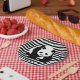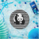Cadeaux, accessoires et décor maison avec panda géant et rayures noires et blanches.