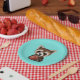 Assiettes En Carton Panda rouge de bébé mignon jouant avec le