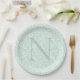 Assiettes En Carton Papier damassé vert sauge initiale de monogramme