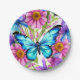 Assiettes En Carton Papillon bleu dans un champ de fleurs