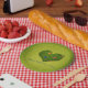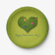 Belle illustration romantique : pelouse en forme de coeur avec fleurs et papillon sur un arrière - plan grungy vert.