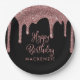 Elégante Black and Rose Gold Sparkle Parties scintillant Drips Plaques papier de fête d'anniversaire avec fausse parties scintillant gouttant sur un arrière - plan noir chic. Conçu par Cèdre et String. Pour personnaliser davantage, cliquez sur le lien "customiser plus loin" et utilisez l'outil de conception pour modifier la conception. Si vous avez besoin d'aide ou d'articles correspondants, veuillez nous contacter à cedarandstring@gmail.com . Parfait pour votre esthétique de luxe !