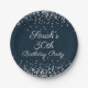 Assiettes En Carton Parties scintillant d'argent bleu marine 30e fête