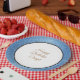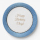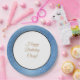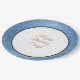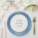 Plaque à papier de partie montrée dans une copie bleue de parties scintillantes de faux d'amusement autour de la jante et du centre blanc. Joyeux anniversaire avec votre choix nommé fait sur commande écrit au centre.