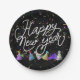 * Happy New Year! Party Hats, Confetti and Party Streamers design on Paper Plates to customize.