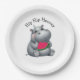 Cette charmante plaque en papier vous fera fêter avec style cet adorable accessoire de table d'anniversaire hippo-thème. Le design comprend un hippo gris-blanc mignon assis, portant son petit casquette de fête tout en grignotant sur une tranche de pastèque, apportant une ambiance joyeuse et joyeuse à la fête. Le message dit 'hip hip hip hop' parfait pour une fête.