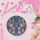 "Dénim Patchwork" Un agencement symétrique de rectangles texturés, en forme de tissu, dans les tons muets de bleu, vert, rose et beige. La disposition ressemble à une courtepointe ou à une mosaïque en patchwork, chaque bloc étant méticuleusement aligné pour créer une structure équilibrée en forme de grille.