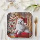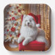 Assiettes En Carton Père Noël Samoyed Dog sur une chaise rouge