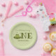 Notre petite grenouille tourne une première plaque de papier d'anniversaire pour bébé. Ces plaques sont vertes avec le mot "Un" en gros caractères avec une illustration de grenouille comme première lettre du mot. Simplement, customisez ces assiettes, ajoutez-les à votre panier, et joyeux anniversaire à votre merveilleux bébé! Petite grenouille transformant un animal mignon 1er Anniversaire Papier Plate Jour férié Conception | ©Melissa Patton - Artiste/Illustrateur