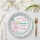 Pickleball rose et vert fête d'anniversaire personnalisées plaques en papier imprimé modèle, martini en raquette martini à pickleball vitres adultes fête monogrammed plaques en papier, bibelot moderne coquette pickleball fête personnalisée décoration carte papier imprimé