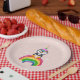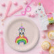 Prato de papel com ilustração de um pinguim unicórnio fofo.