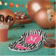 Célébrez votre anniversaire avec style avec chic moderne rose girly et noir zèbre rayé monogramme personnalisé plaque de papier fête d'anniversaire. Modifiez la police, déplacez le texte, et plus encore en cliquant sur le bouton "Customiser".
