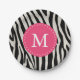 Assiettes En Carton Pink & Black Zebra Strig Monogramme fête d'anniver