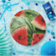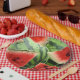 Un design graphique de pastèque par l'artiste-designer Charmaine Paulson sur une assiette de pique-nique.