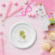 Modernes et chics, ces assiettes et bols en papier présentent une typographie élégante entourée d'une belle aquarelle peinte de palmiers tropicaux. Peinture inspirée du littoral de Père Noël Barbara. Suite de mariage complète correspondante disponible.