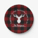 La conception du produit comprend un profil en silhouette d'un renne sur un motif classique à plaid de buffle rouge et noir. Combinée à votre propre texte personnalisé, cette composition fait de la ferme des plaques en papier de style campagnard, modernes et uniques pour Thanksgiving, Noël, réunion de famille ou tout autre événement spécial !