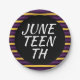 Plaques de papier de fête du 17ème jour avec une bordure de rayures violettes et jaunes. Ils ont un arrière - plan noir au centre avec le texte en blanc. Junet1 Purple Jaune Bordure Papier Bordure Plaque Jour férié Conception | ©Melissa Patton - Designer