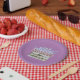 Assiettes En Carton Plaque de papier en violet avec fleurs en conteneu