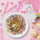 Peigne de miel entourée d'un cadre fleuri avec une jolie petite abeille aquarelle et une lettre monogrammée.
