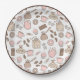 Cette assiette en papier est dans les tons pastel marron, beige, rose blush et blanc. L'assiette est conçue avec du café haricot, cafetière, sucré, cupcake, tasse et soucoupe, beignet et moulin à café en levain.